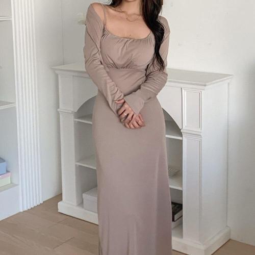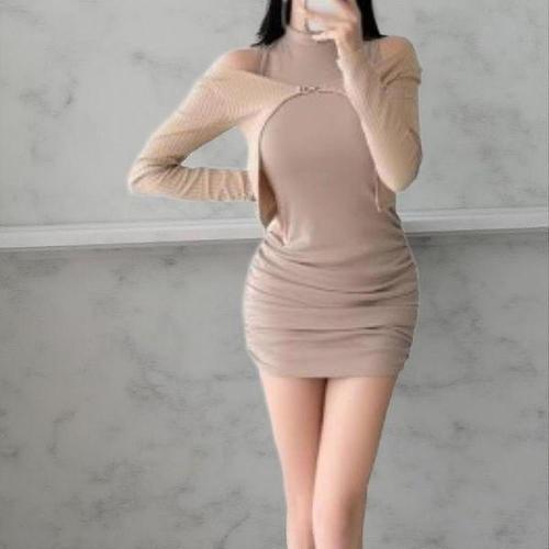 [다잇템]여성 코디 숏가디건 쁘띠 슬림핏 드레스