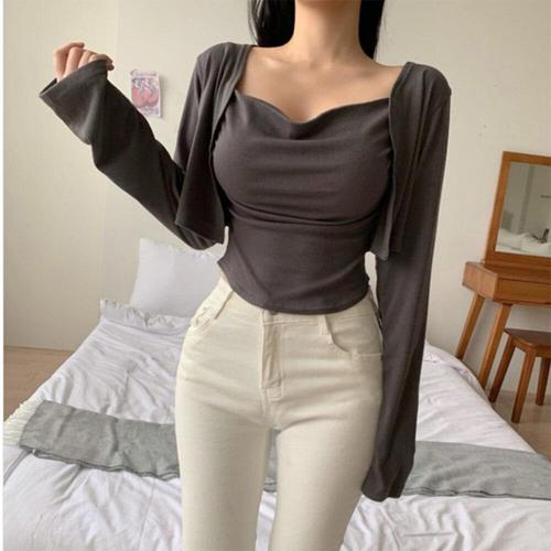[다잇템]여자 드레이프 숏가디건 끈 카디건 세트