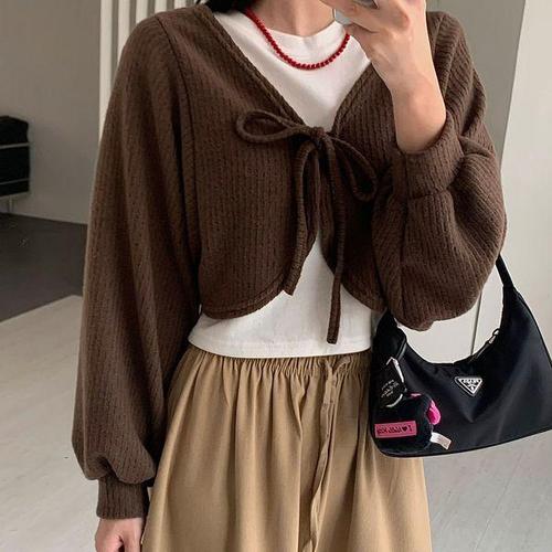 [다잇템]여자 FW 탱크 벌룬 골지 리본 숏가디건 가디건