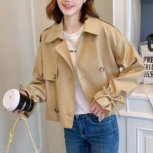 [에이치플러스몰]여성 크롭 트렌치 숏자켓 1P 소매 스트랩 간절기 재킷