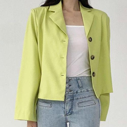 [에이치플러스몰]여성 캐주얼 크롭 면자켓 카라 포인트 숏자켓