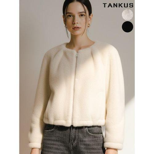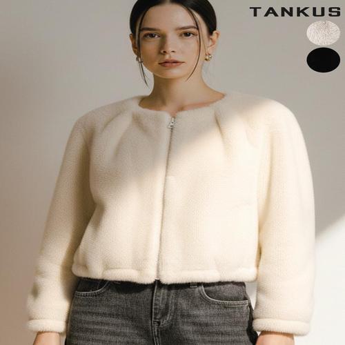 [탱커스]여성 라운드 퍼 집업 숏자켓
