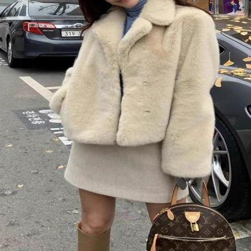 EAMT 여성 추동 인조 효과 쇼트 코트 YJ4