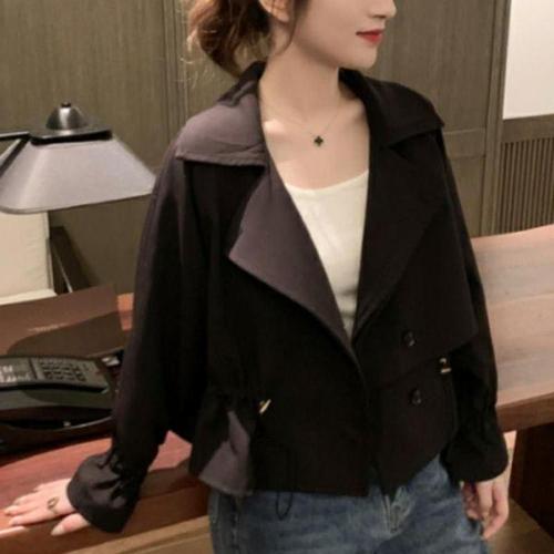 [에이치플러스몰]여성 봄 가을 간절기 크롭 스트링 숏 트렌치 자켓