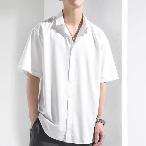 쿨 스탠다드디테일 미니멀 유니크 네크라인 남성용 숏티 와이셔츠