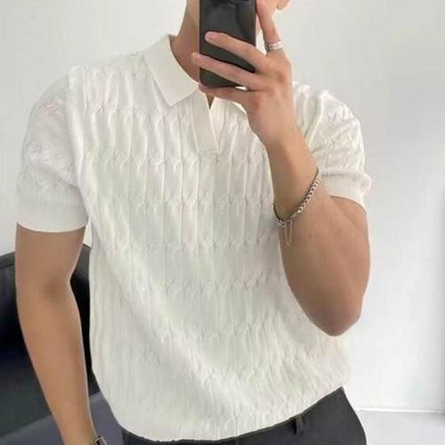 깔끔데일리룩 남자 무늬 숏티 셔츠칼라 니트셔츠 스탠다드