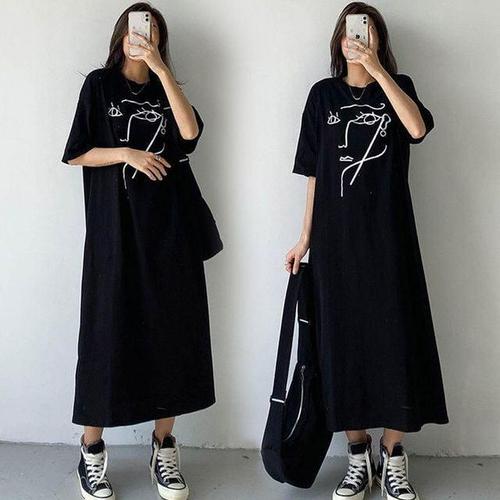 레이디스시즌 페이스 레터링 원형넥 숏티 드레스