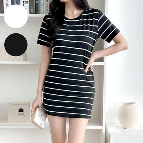 세로줄 크롭 롱드레스 우먼데일리룩 숏티 심플 드레스