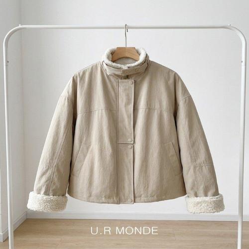 유아몽드 / 배색 뽀글이 안감 여성 숏패딩 오버핏 하이넥 양털 패