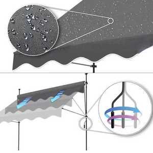 FONOW 자가설치용 어닝 캐노피 방수 옥상 테라스 가게 옥상 수동 고정 햇빛가리개, 아이보리