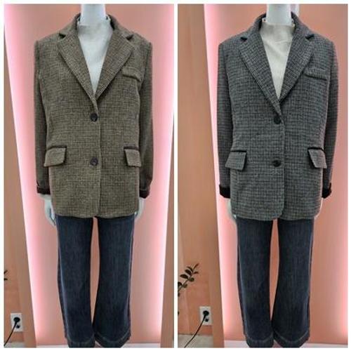 수스 HC04 트리밍 배색 체크 슬림 자켓 S251BJK204