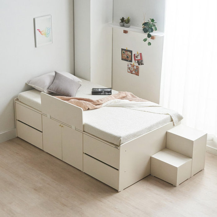 에보니아 로미 공간 분리 수납 수퍼싱글 침대 프레임 옷장B형(헤드형) 계단수납 포함
