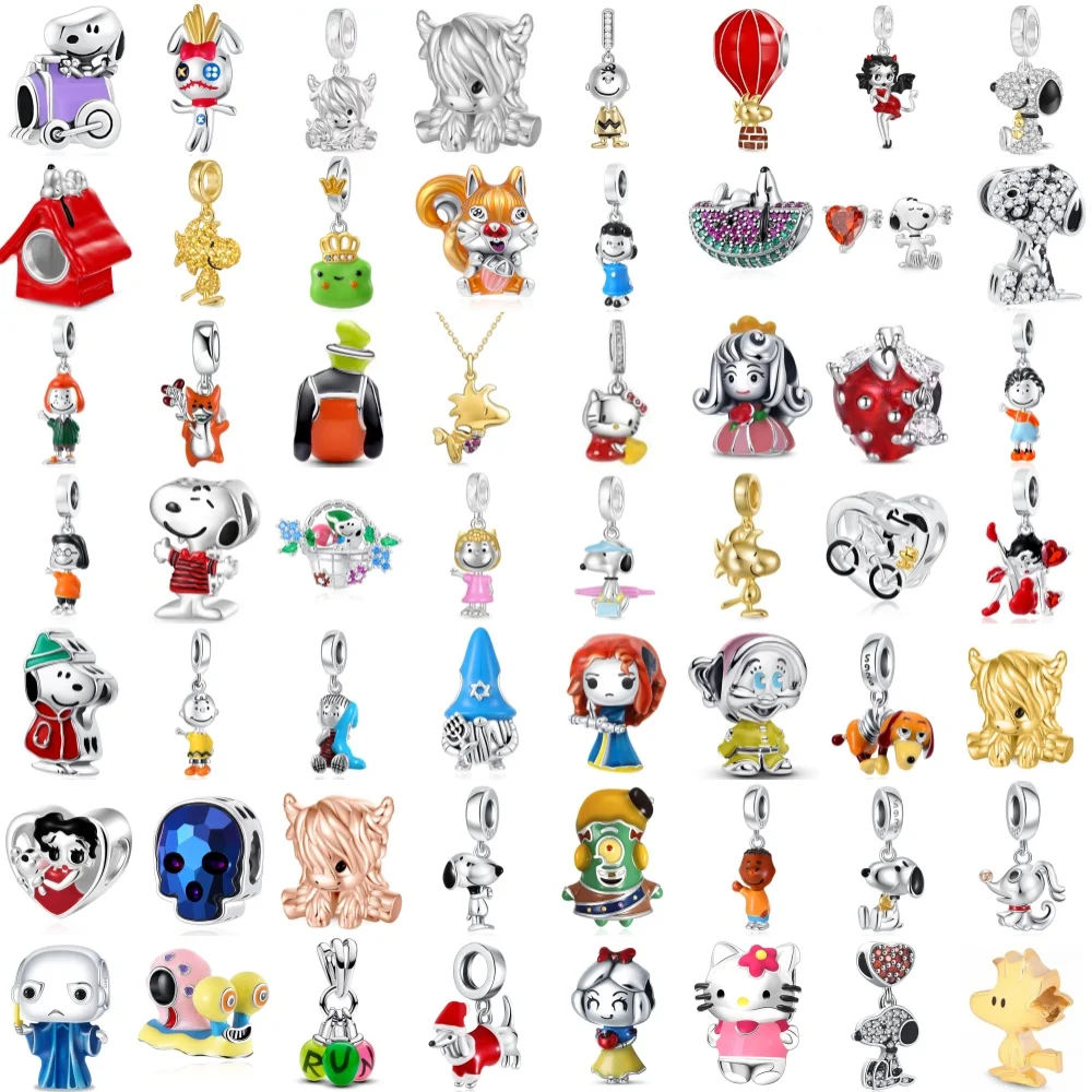 2025 새로운 뜨거운 판매 925 실버 레드 뜨거운 공기 풍선, 집, 개, 고양이, 소년, 소녀 구슬 펜던트, 원래 팔찌 DIY 절묘한 보석