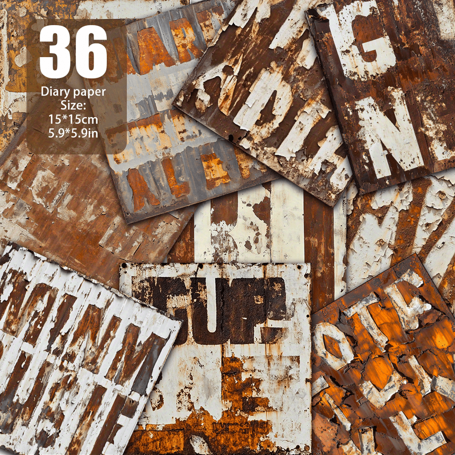 TEMU 빈티지 녹슨 철제 레터 보드 스크랩북 종이, 핸드메이드 종이, 배경 장식에 적합한 재료 종이, 쓰레기 일기장, 복고풍 일기장 배경 카드 매트, 핸드메이드 인사말 카드 제작 및 기타 장면용 사양: 5.9*5.9인치 36매