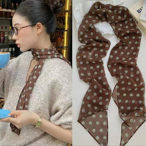 다프네 폴카 도트 무늬 실크 고급 롱 스카프