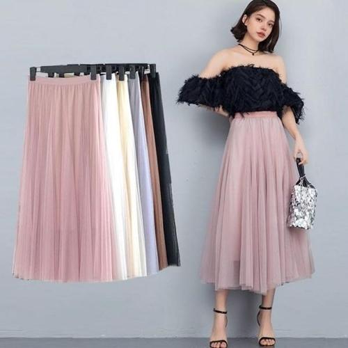 [엄지척]여성 발레리나 롱스커트 허리밴딩 이중 쉬폰 A라인_19959233_667501