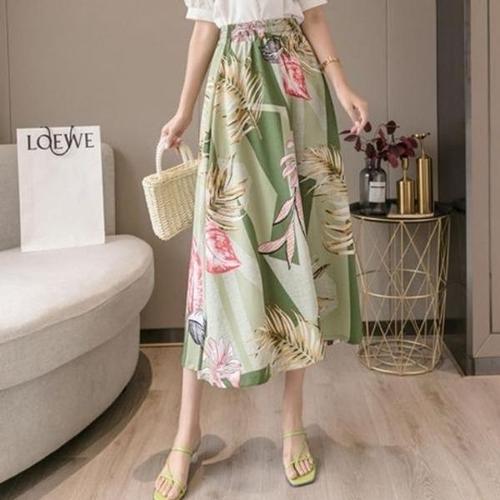 [엄지척]플라워 주름 밴딩 맥시 롱 스커트 A라인 봄 여름 쉬폰_19958520_667501