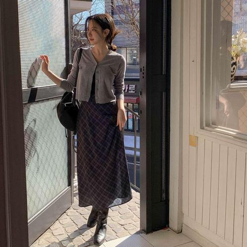 [시크블랙]로헤르 쉬폰 체크 A라인 롱 스커트