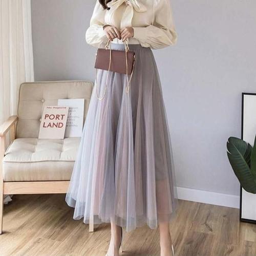 [엄지척]그라데이션 스커트 허리밴딩 이중 쉬폰 A라인 롱 치마_19959137_667501