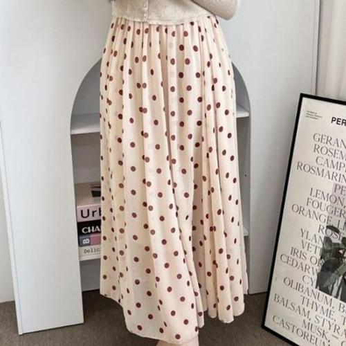[엄지척]땡땡이 여성 여자 쉬폰 밴딩 롱 스커트_19959207_667501