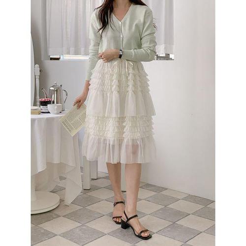 [하젤]디아베 쉬폰 프릴 캉캉 미디 스커트_S4593