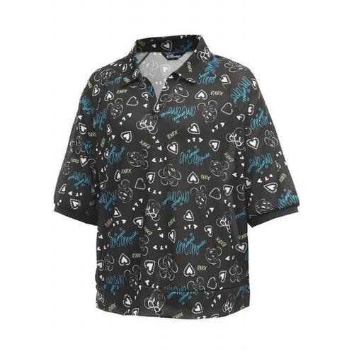 [디즈니골프][본사] [디즈니골프] 여성 전판 프린팅 오픈카라 쉬폰 반팔 카라 티셔츠 DN2LTS031