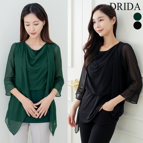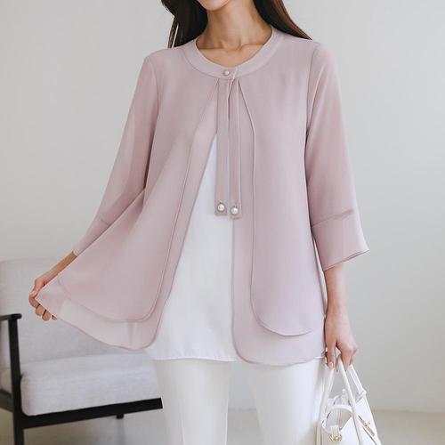 엄마옷 드리다 여자 여름 7부 이중 쉬폰 가디건 빅사이즈 티 블라우스 40-50대 미시 중년여성 하객 출근