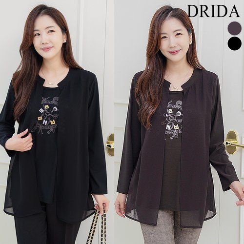 엄마옷 드리다 여자 가을 프린팅 이중 쉬폰 빅사이즈 가디건 티셔츠 50-60대 중년여성 마담옷 출근 선물