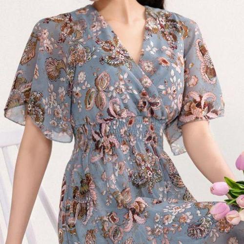 ORZQU 여성 여름 브이넥 루즈핏 원피스 패션 고급 쉬폰 원피스