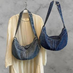[다잇템] 여성 반달형 끈 정리 캐쥬얼 통큰 조절 데님팬츠 크로스백