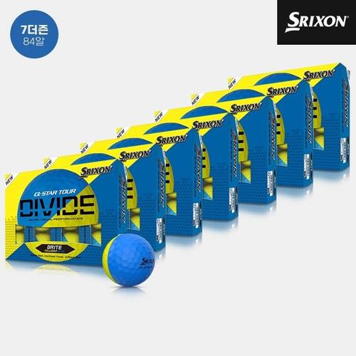 7더즌 84알 던롭코리아 정품 스릭슨 Q-STAR 투어 5 디바이드 골프볼남여공용 옐로우블루 3피스