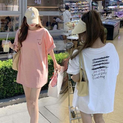 [셀럽하우스]스마일로고 YRFQ9284 오버핏 티셔츠 빅사이즈 박스티 레깅스코