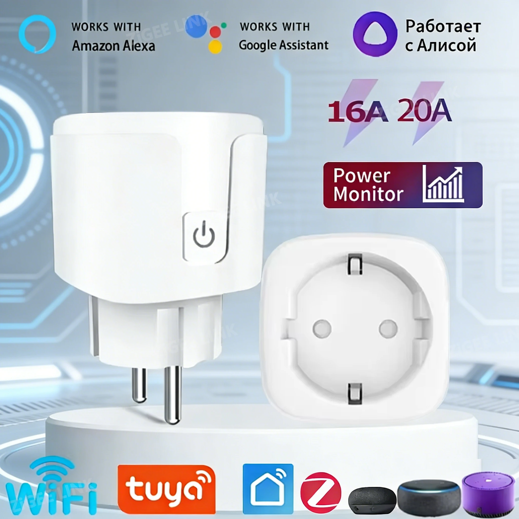 Tuya WiFi/Zigbee 스마트 플러그 EU 소켓 전력 모니터 타이머 기능 스마트 홈 제어 알렉사 구글 보이스 홈 어시스턴트 지원