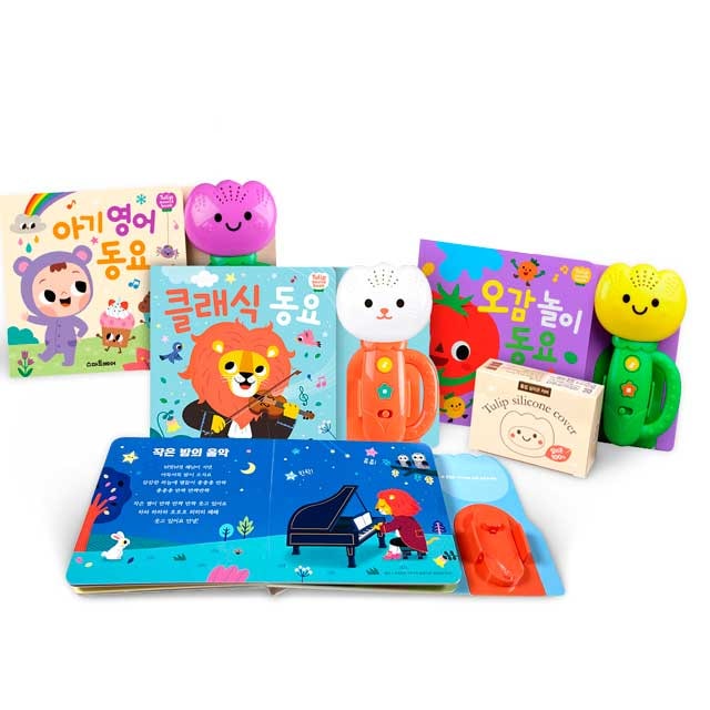 튤립 사운드북 코랄이 클래식 전3권+실리콘커버(아기영어+클래식동요+오감놀이)