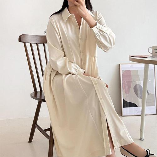 |CSO5963|여성 투웨이 긴셔츠 카라넥 77사이즈 봄철 롱원피스