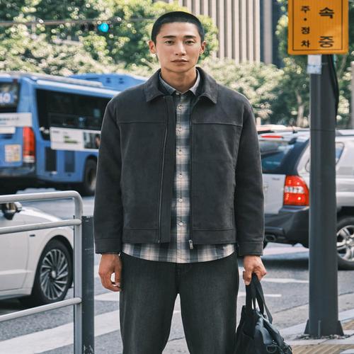 [STCO]스웨이드 트러커 점퍼_차콜 그레이 (세미오버핏)_BP