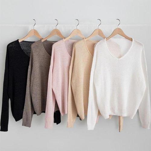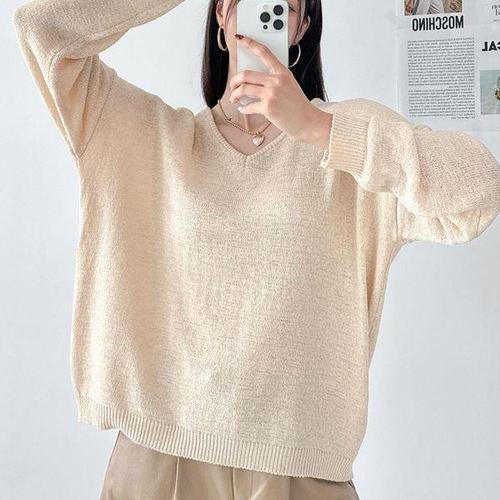 [옷자락]여자 여리여리 브이넥 박스핏 시스루 롱슬리브 니트