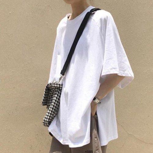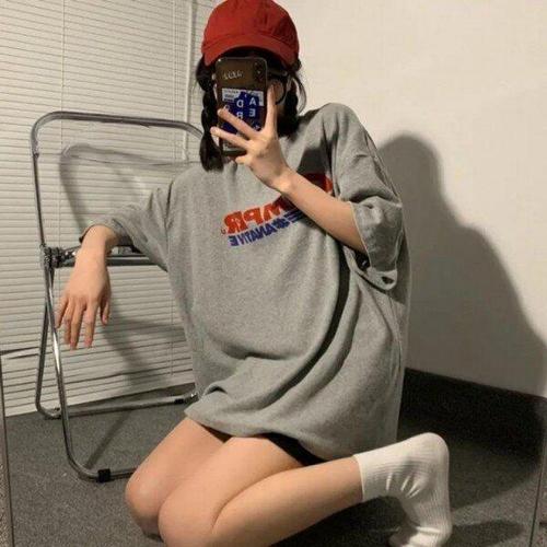 [모노무드]LMO 걸 탑 베이직크루넥 오버사이즈 박스티 심플패턴 하프슬리브