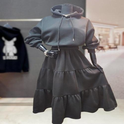 [비바앤코코넛]기모 후드 캉캉 스커트 투피스 세트