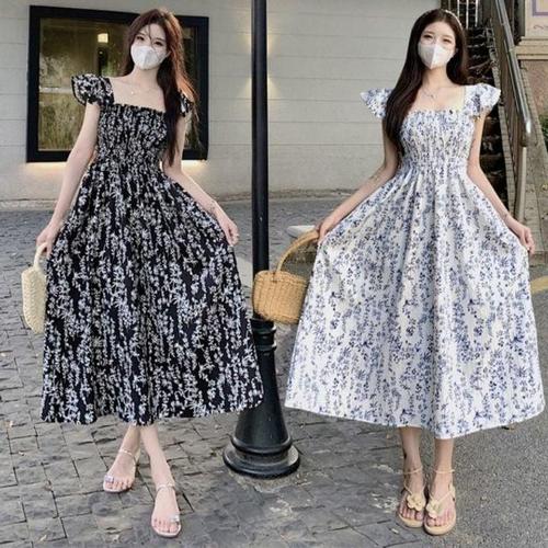 스모크밴딩 데일리 플라워 스퀘어넥 러블리원피스 신혼여행룩 휴가철패션