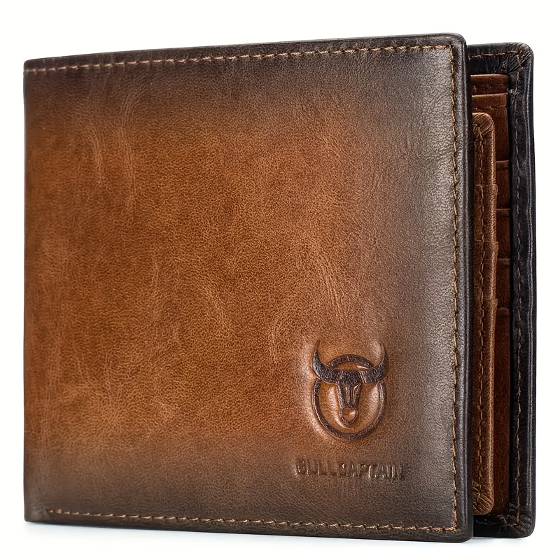 TEMU 남성용 탑그레인 소가죽 지갑 - 바이폴드 컴팩트 디자인, 대용량 멀티펑셔널 카드 슬롯 & 동전 주머니 포함, 레드 캐주얼 & 비즈니스 스타일 - 아버지의 날 선물 또는 남자친구를 위한, 일상적인 잔돈 포켓, 로고 디자인, 페블 텍스처|명함지갑