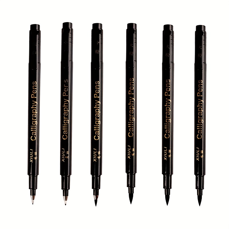 TEMU 6개 캘리그라피 브러쉬 펜 세트, 부드러운 및 강한 팁, 4가지 사이즈, 초보자 필기, 미술 페인팅, 다이어리, 학생, 미술 용품, 캘리그라피 도구, 캘리그라피 펜에 적합