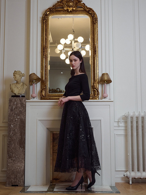 TEMU 레이스 트림 A라인 스커트 - 블랙 & 화이트 대비 컬러 블록, 플레어드 러플 밑단, 매력적인 핏, 봄 여름 가을용 세탁기 사용 가능, 캐주얼부터 포멀까지의 의상, 레이스 스커트, 다재다능한 패션, 피티드 실루엣, 부드러운 원단 상단
