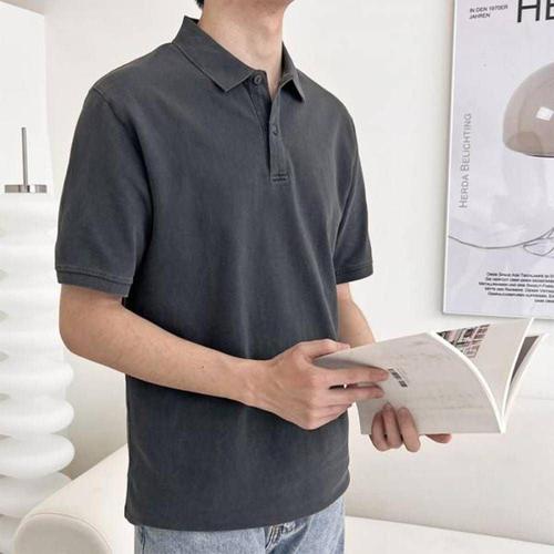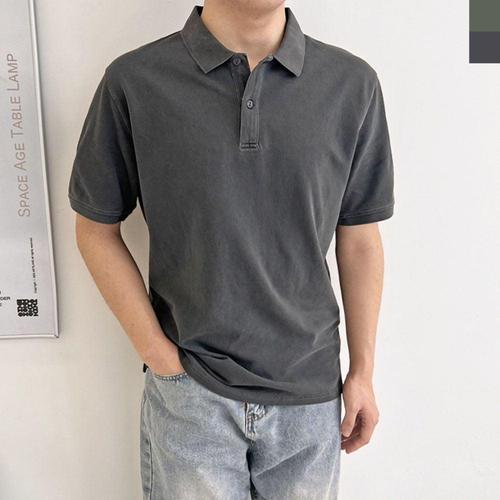 [모로엠]남성 스톤 코튼 PK 카라 반팔 티셔츠 DM-TSH-QKQQPL211-차콜