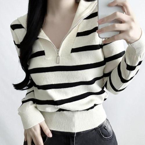 반집업 니트티 카라 긴팔 스트라이프 크롭 니트 WFLX69J