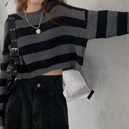 스트라이프 크롭 라운드 오버핏 니트 니트티 WFLX6A5