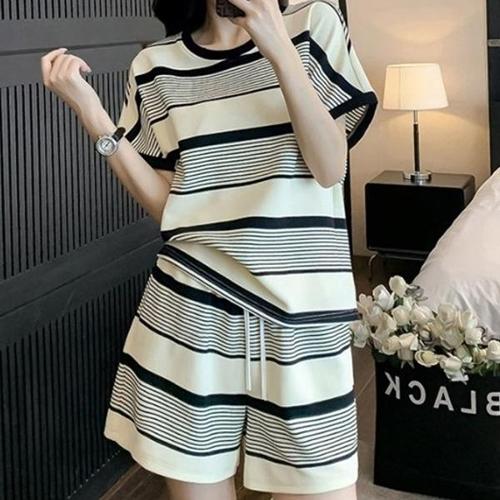 [신상오픈런]|CCD23EC|스트라이프반팔티 줄무늬반바지 투피스세트 여름홈웨어_20165911_597559