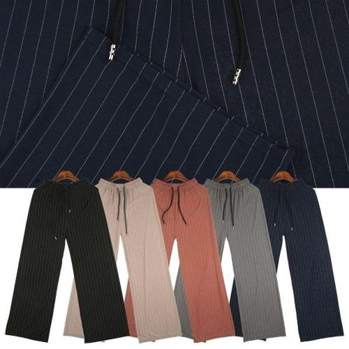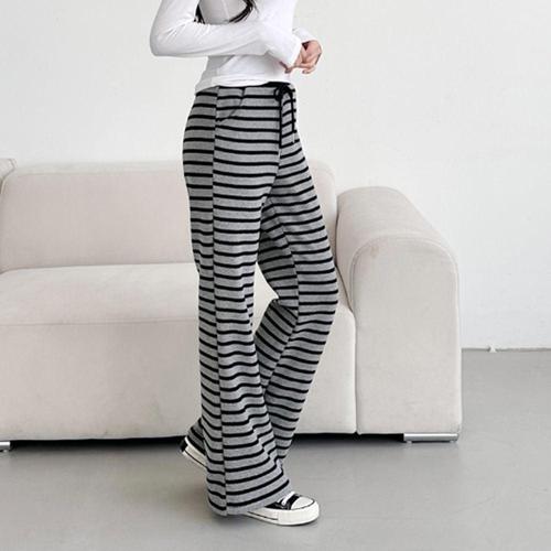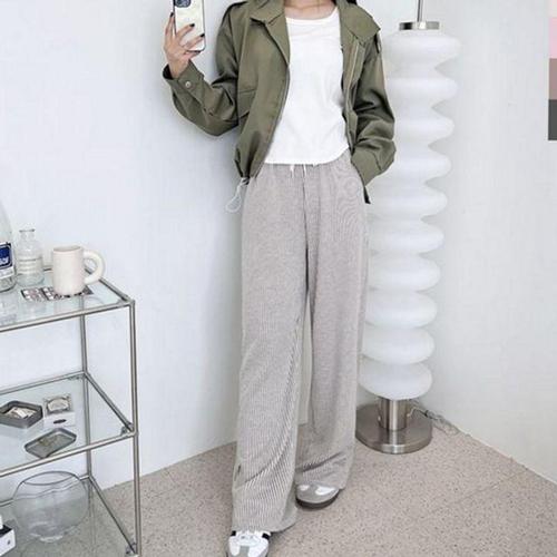 데일리 여자 스트라이프 팬츠 스판 여자 밴딩 와이드 팬츠 바지 WFLX3WO
