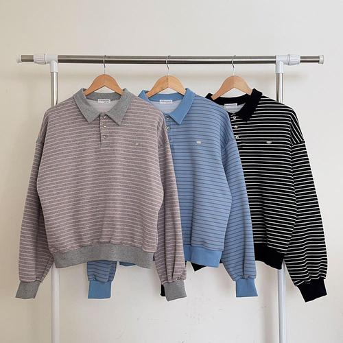 [옷자락] 여성 스트라이프 긴팔 카라티 가을 코튼 맨투맨