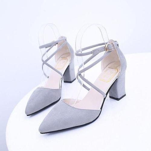 [셀러허브_여성트랜드패션]ONM 스웨이드 발목 스트랩 굽 높은 뾰족코 힐 여성 통굽